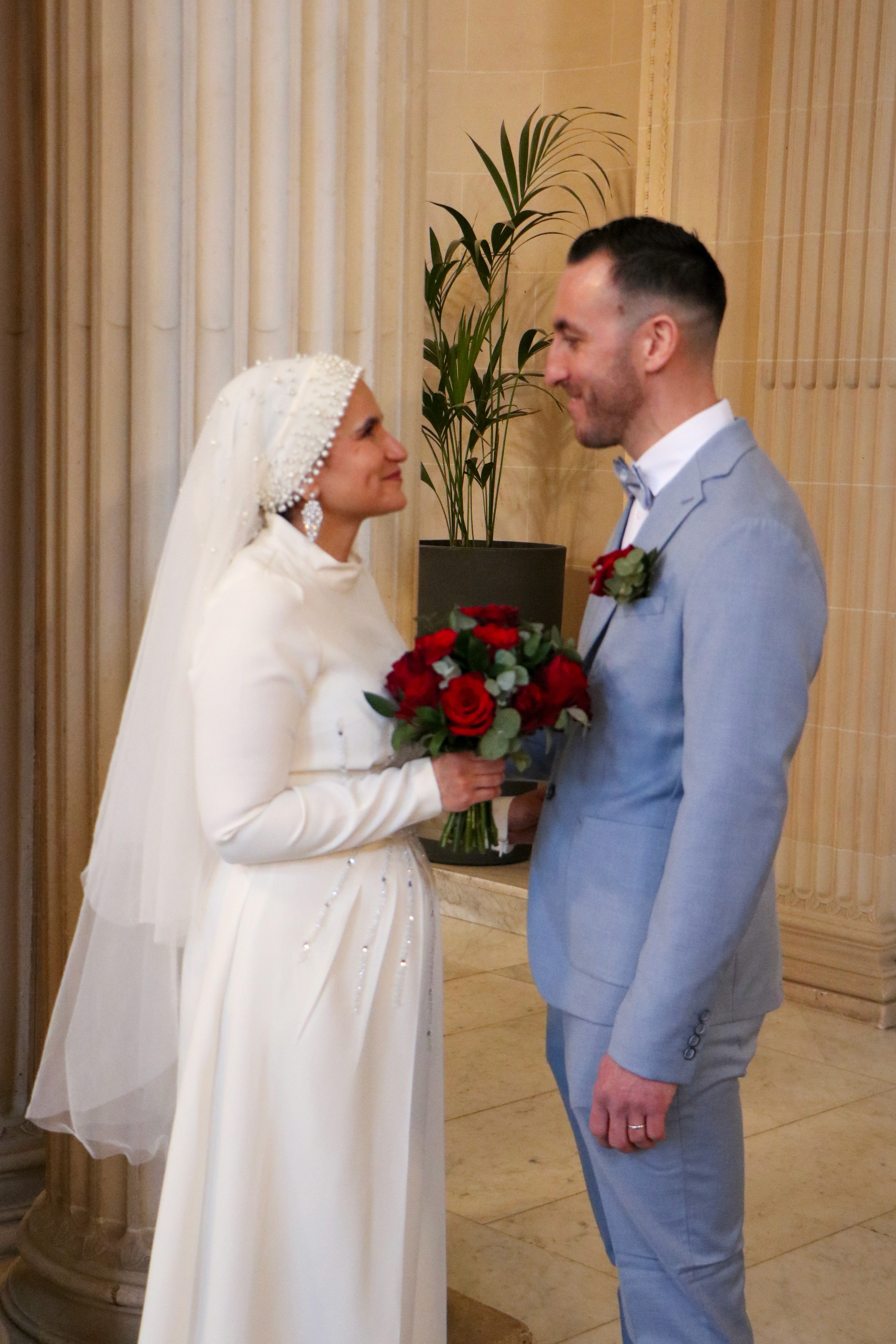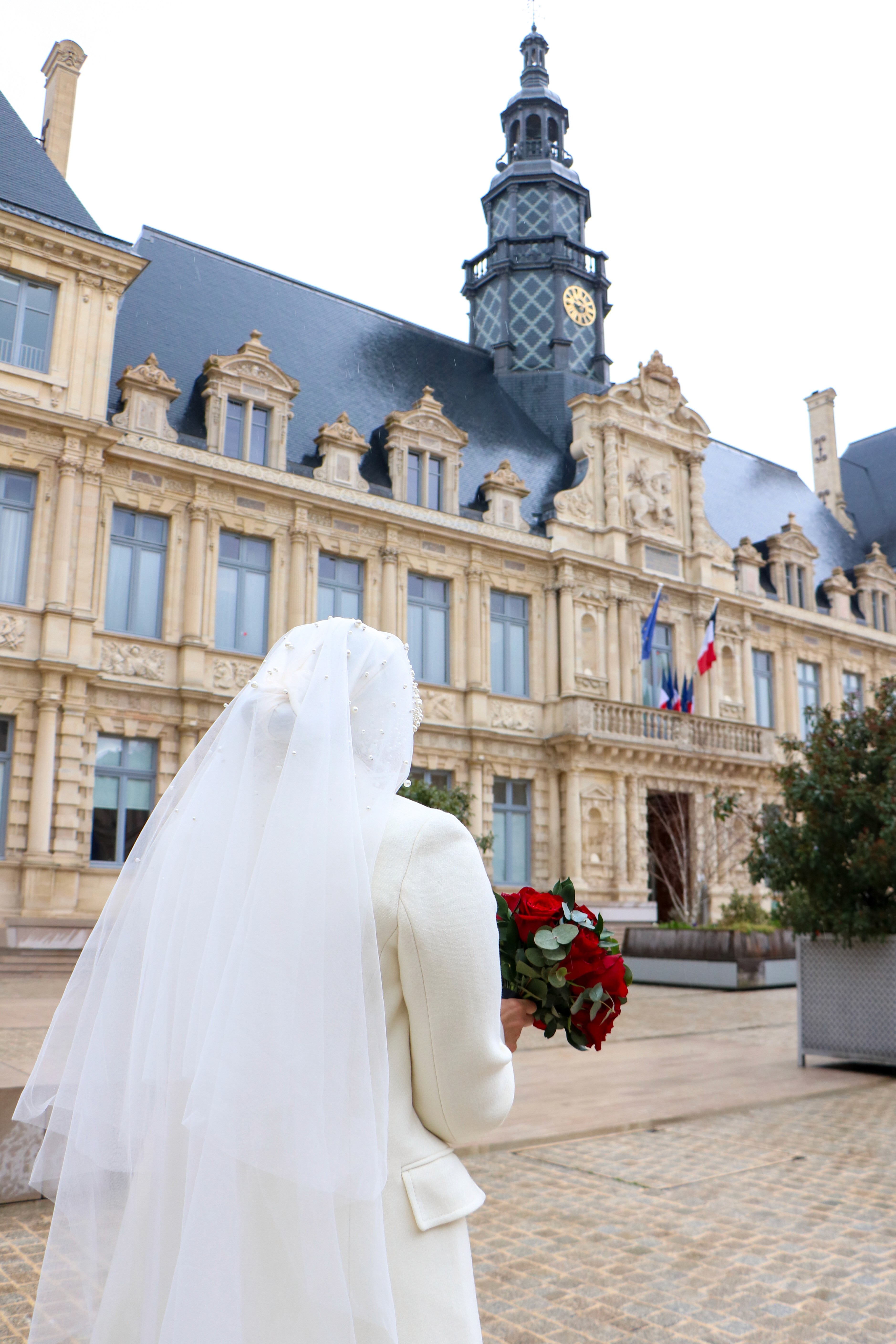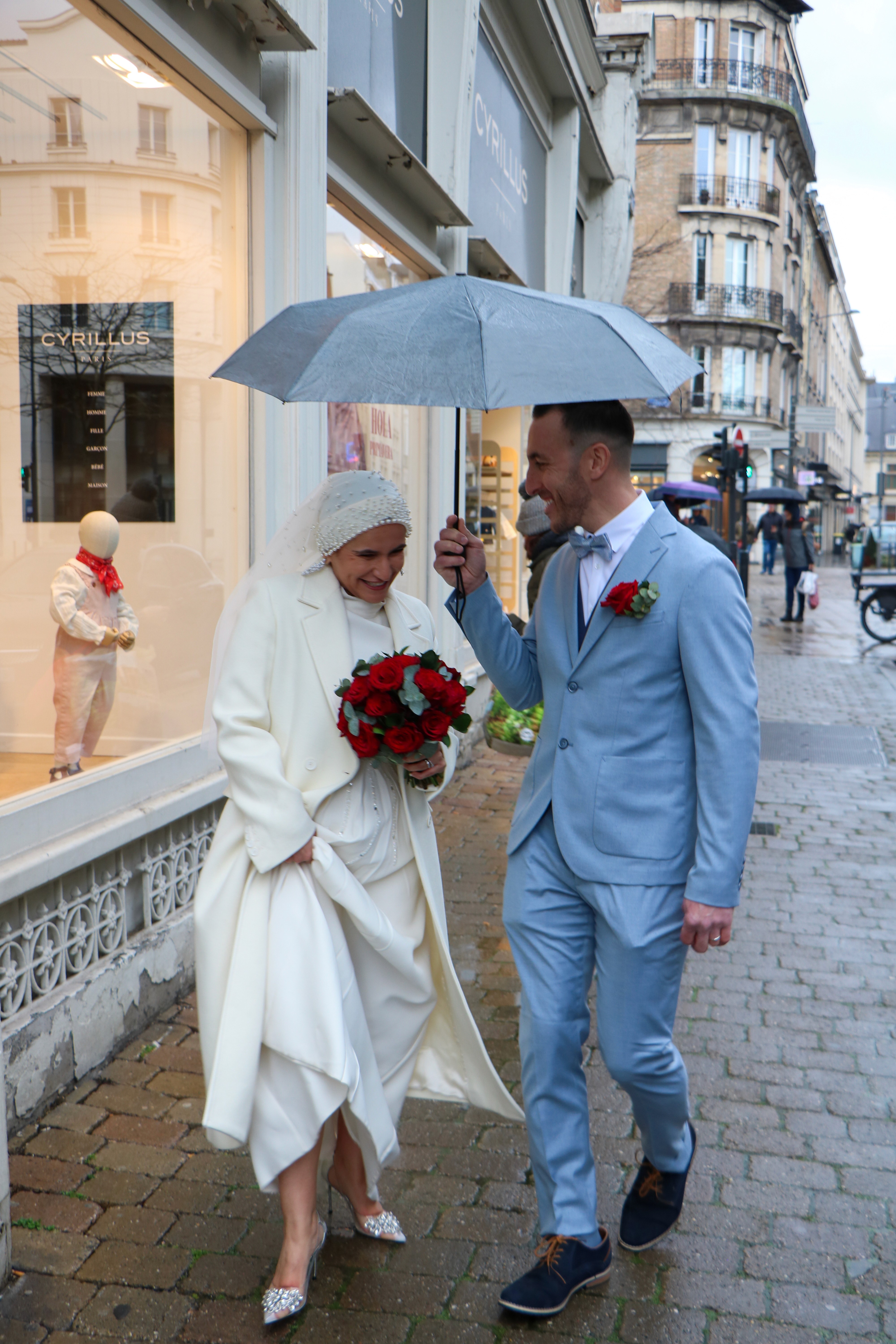 L’amour en parapluie raconte un mariage bercé par la pluie, là où chaque goutte renforce la douceur de l’instant. À Reims, devant la mairie, les parapluies s’ouvrent comme des promesses tenues, abritant les regards complices et les gestes tendres. Les pavés brillent, les vêtements se parent d’éclats humides, et la ville devient le théâtre discret d’un amour qui ne craint pas le ciel gris. Ce jour-là, rien n’a été contrarié — au contraire, la pluie a dessiné un écrin intime autour du “oui”, transformant le quotidien en poésie ruisselante.